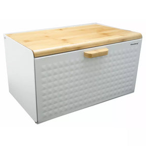 Cutie de pâine cu două fețe, cu un design inteligent și funcțional, combinând metalul robust cu o suprafață naturală din bambus. Fabricată din materiale de înaltă calitate, igienice și ecologice, sigure pentru alimente și ușor de întreținut.