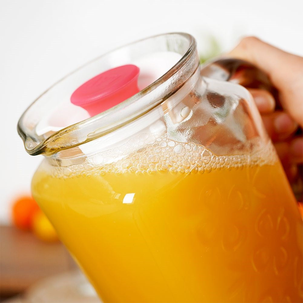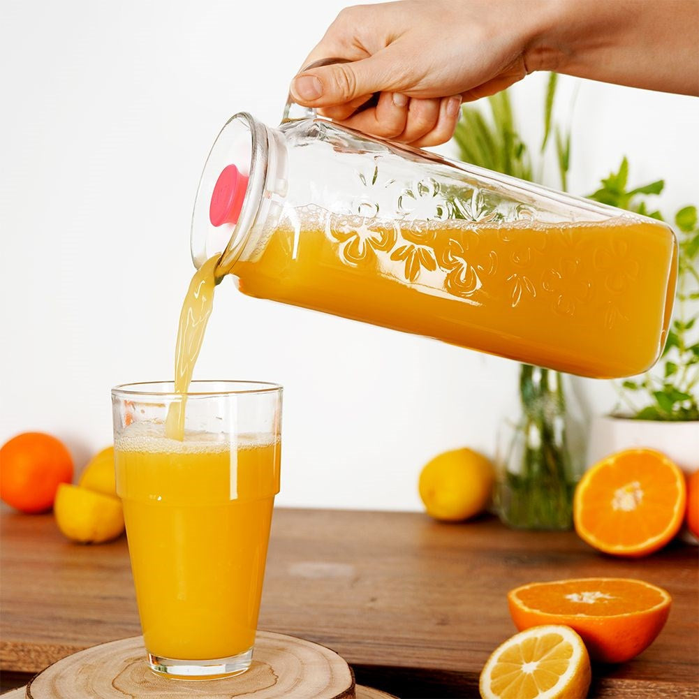 Carafa din sticlă LAV Bloom, cu o capacitate de 1,2 l, este ideală pentru servirea apei, sucurilor, smoothie-urilor și a altor băuturi. Cu un capac alb care protejează conținutul de praf, această carafă este practică și convenabilă pentru utilizarea zilnică. Ușor de curățat și lavabilă în mașina de spălat vase, oferă confort și comoditate în bucătăria dumneavoastră.