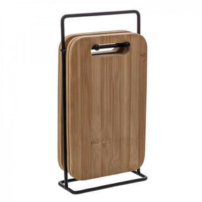 Tocătoare și tăblițe de prezentare, set de 4 piese din bambus cu suport metalic.